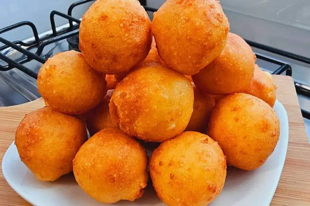 Esse bolinho é a combinação perfeita entre textura e sabor: por fora, ele fica crocante e dourado; por dentro, o queijo derrete e deixa tudo ainda mais gostoso.